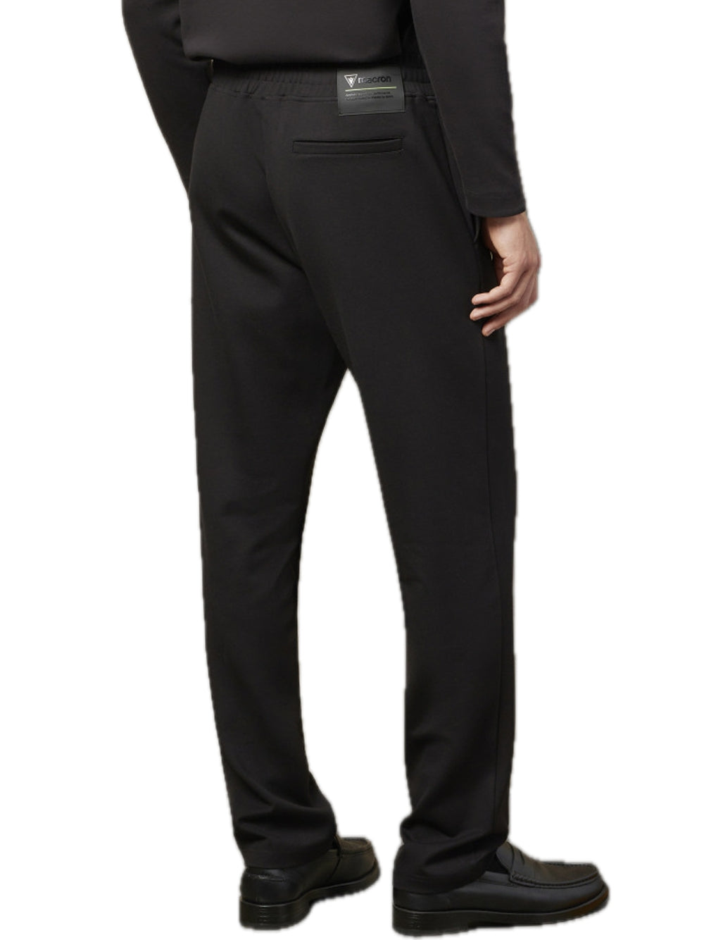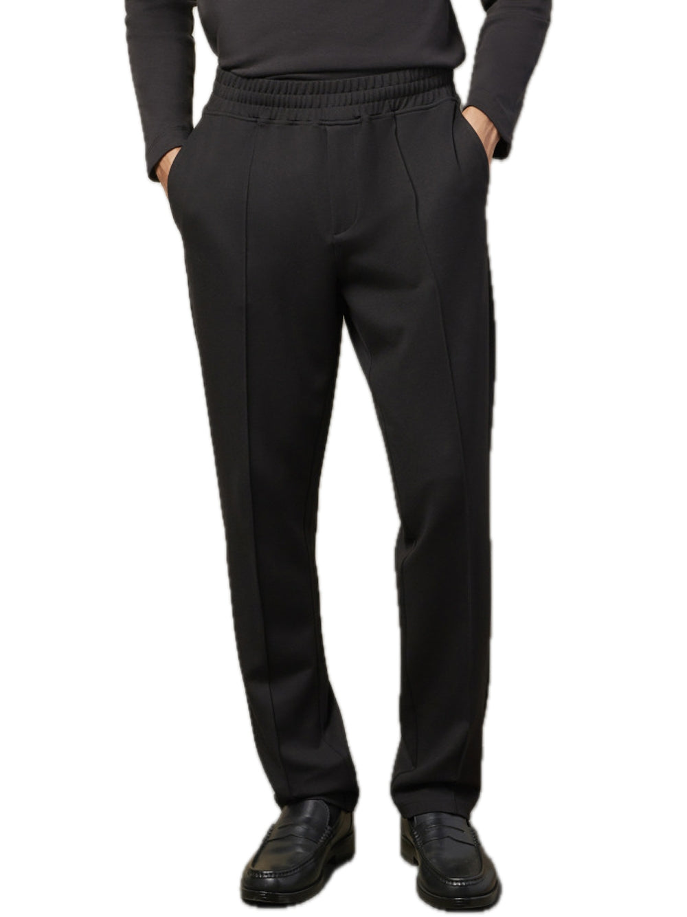 Pantalone Ralph dal taglio pulito, valorizzato da una texture compatta che dona carattere e raffinatezza. Realizzato in tessuto punto Milano compatto e leggermente elasticizzato, questo capo unisce eleganza e comfort. Le pence frontali aggiungono volume nella parte superiore migliorando il fit e la libertà di movimento, senza compromettere la silhouette pulita e definita. La coulisse piatta con finitura in silicone completa il design con un tocco tecnico e funzionale. Completato da una salpa in silicone applicata sul retro.