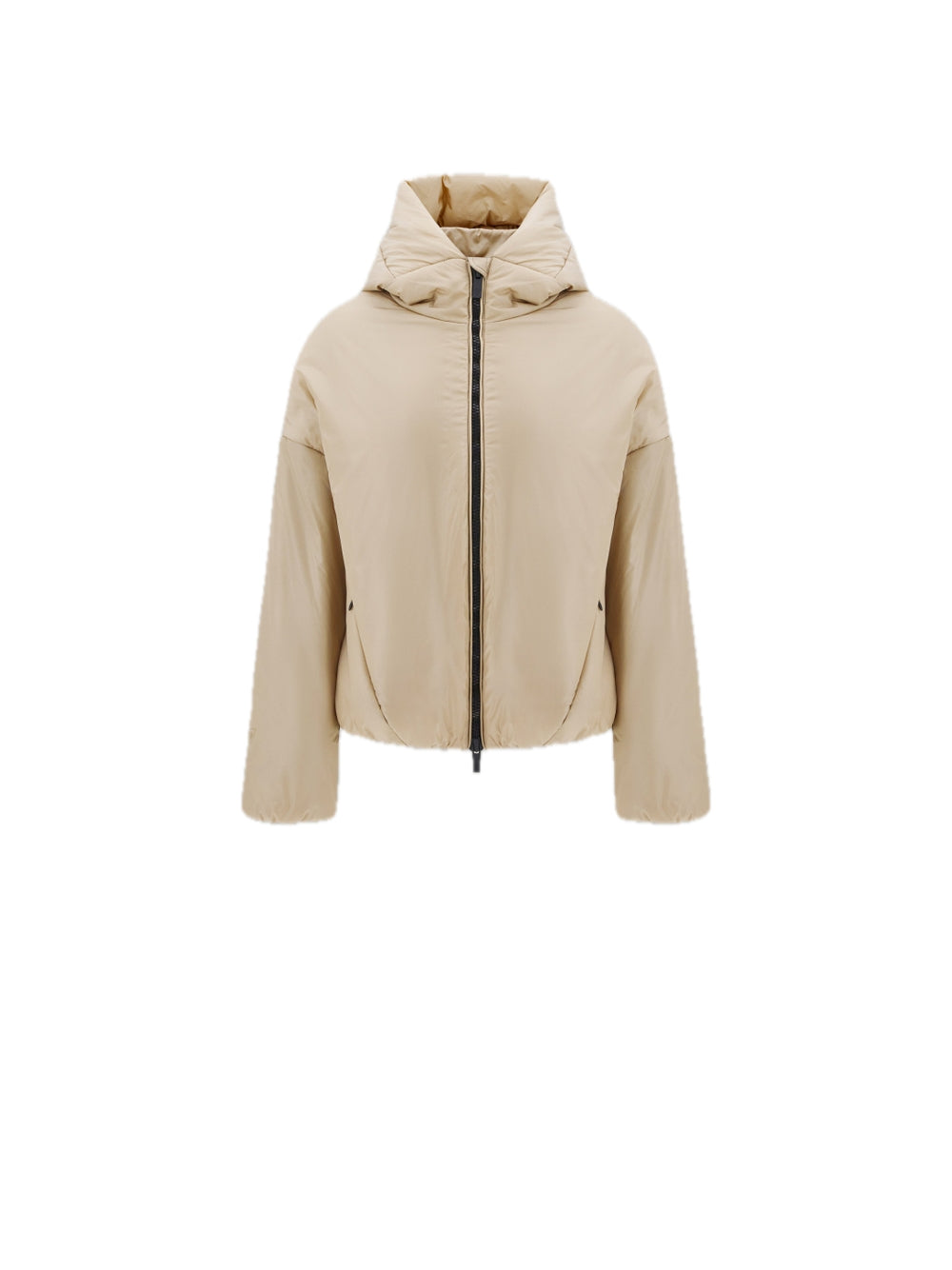 Casual e sofisticata, la giacca Krissy imbottita con cappuccio unisce comfort e design contemporaneo. La spalla scesa con taglio relaxed dona un look moderno e rilassato, mentre la zip frontale con doppio puller personalizzato aggiunge praticità e carattere. Le tasche laterali presentano invisible zip e puller personalizzati. Il logo gold stampato sulla manica destra completa il capo con un dettaglio elegante e distintivo.